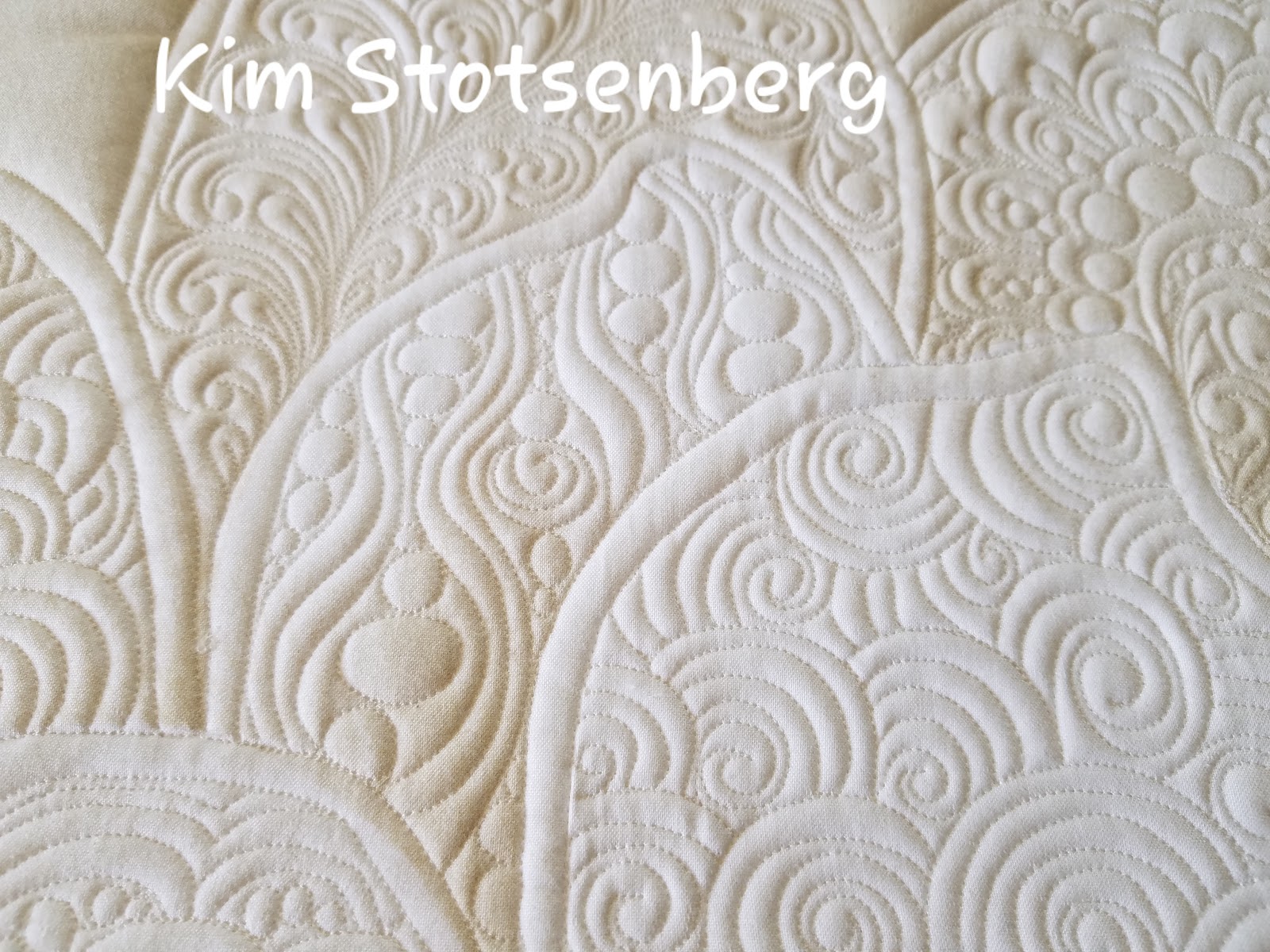 I showed you the blossom pedals I've been quilting on this Dream Big quilt but let's not forget about feathers! Not just your average traditional type of feathers... feathers with a bit more flare! Feathers within a feather
